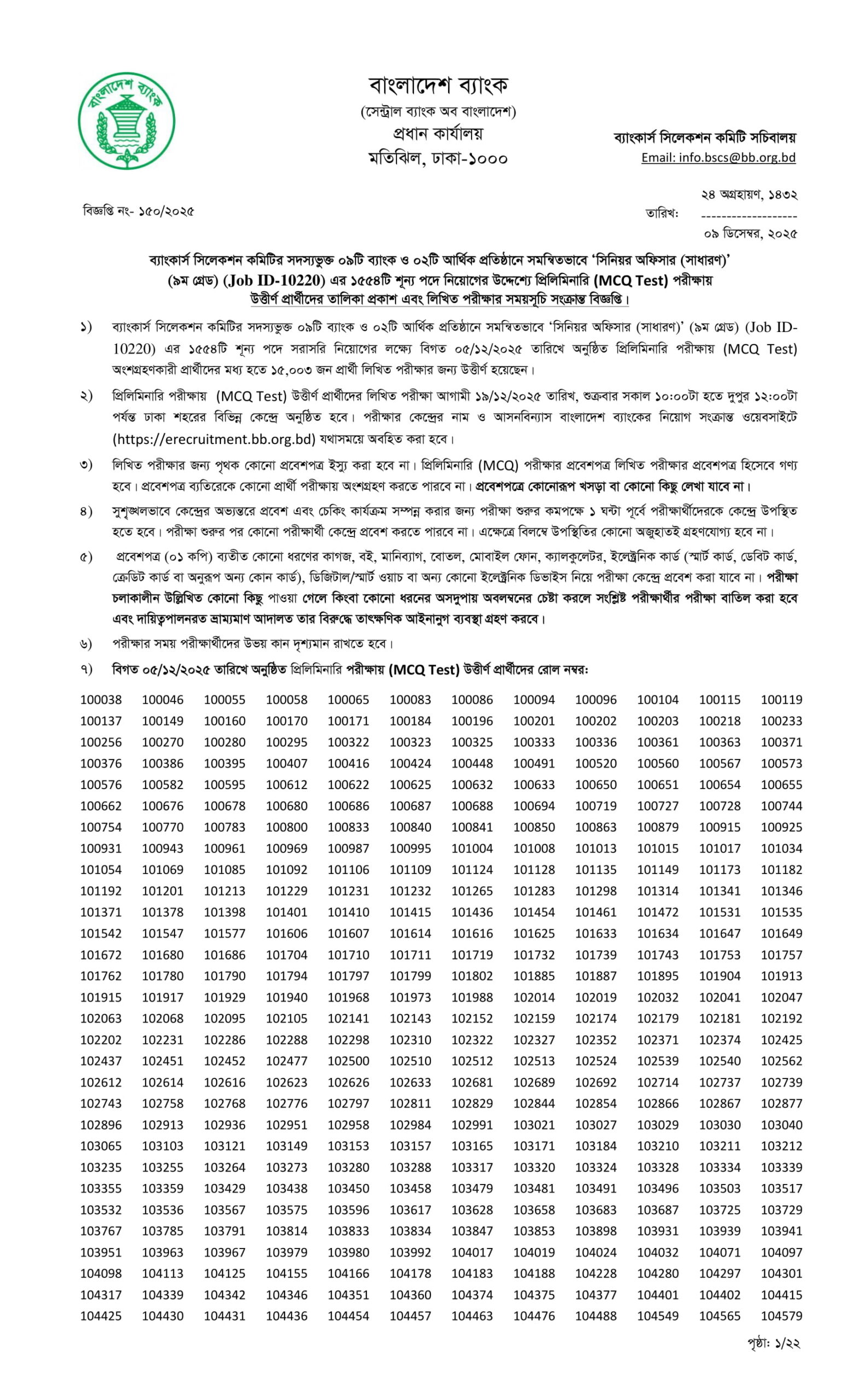 The Combined 11 Bank Senior Officer (General) Exam Result Notice 2025 has been published. Bangladesh Bank is the central bank of Bangladesh. Bangladesh Bank has published a huge job circular by the Authority. All information regarding the appointment at Bangladesh Bank is given on our website, jobstestbd.com. We publish all job circulars daily, Such as Government Jobs in Bangladesh, Bank Jobs in Bangladesh, Private Jobs in Bangladesh, International NGOs in Bangladesh, Private companies in Bangladesh, and Private University Jobs in Bangladesh. Bank Jobs Results, Government Jobs Results, Government University Jobs Results in Bangladesh, and all Part-time Jobs in Bangladesh and other educational support are available here on our website. We provide different types of job information and some effective information or resources, and job tips that help to get a job easily. We trust that our distribution data helps job seekers who are looking for better employment. We likewise share slanting assets for learners who are expanding their insight. Our main target is to establish a trustworthy occupation round site in Bangladesh by distributing a genuine update that enables opportunities for individuals. All the jobs on this website are not only for unemployed people but also for employed people. All types of suggestions and solutions for the different competitive exams are available here. We provide all types of educational support on our website, jobstestbd.com. So every day, tune in to our website for all kinds of academic support. Please like our Facebook page, jobstestbd.com.