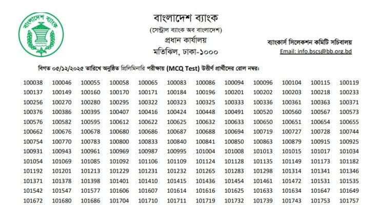The Combined 11 Bank Senior Officer MCQ Exam Result 2025 has been published. The authority has published the Combined 11 Bank Senior Officer Exam Result 2025. The Combined 11 Bank Senior Officer (General) MCQ Exam Result 2025 is good news for job seekers in Bangladesh. All information on the Combined 11 Bank Senior Officer (General) Written Exam Date 2025 is available below. The Banker’s Selection Committee Secretariat (BSCS) is a Government Organization in Bangladesh.