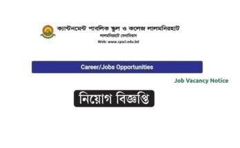 Cantonment Public School and College Lalmonirhat (CPSCL) Job Circular 2025 Read More