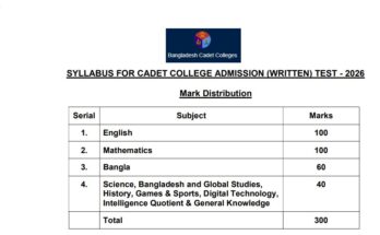 Cadet College Admission Test Syllabus 2026 has been published. Cadet College Admission Test Syllabus and Marks Distribution 2026 has been published by the authority. The Cadet College Class 7 Admission …
