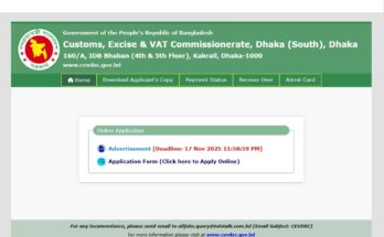 Customs Excise and VAT Commissionerate Dhaka South (CEVDSC) Job Circular 2025 Read More