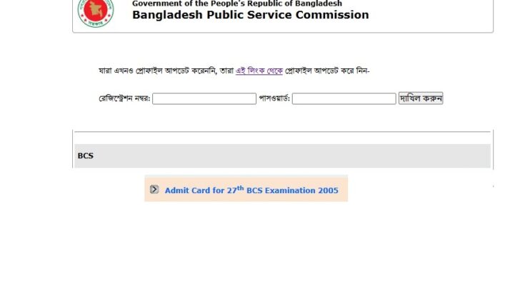 27th BCS Admit Card Download 2025 has been published. The 27 BCS Admit Download 2025 has been published by the Bangladesh Public Service Commission (BPSC). The 27th General BCS Admit Download 2025 is good news for the students in Bangladesh. All information on the 27th BCS Profile Update Notice 2025 is available below. Bangladesh Public Service Commission (BPSC) is a government organization in Bangladesh.