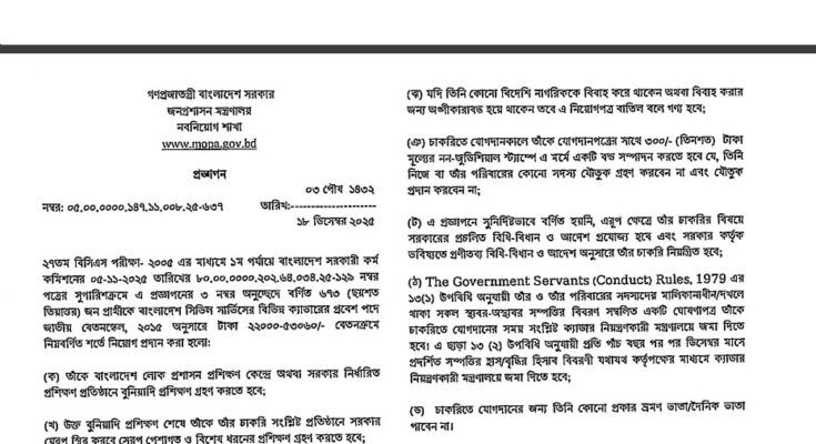 27th BCS Gazette 2025 has been published. The 27th BCS Final Gazette 2025 has been published by the authority. The 27th BCS Gazette Notice 2025 is helpful for job seekers in Bangladesh. All information on the 27th BCS Joining Notice 2025 is available below. Bangladesh Public Service Commission (BPSC) is a Government Organization in Bangladesh.