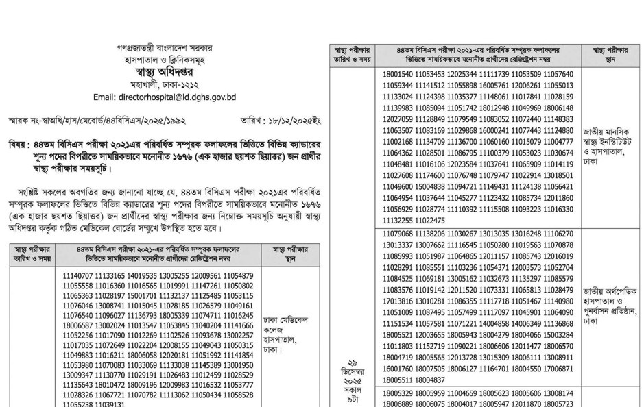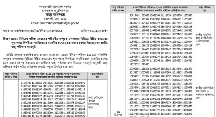 44th BCS Health Test Date 2025 has been published. 44th BCS Medical Test Date 2025 has been published by BPSC. The 44th BCS Medical Test Schedule 2025 is good news for the students. All information on the 44 BCS Medical Test Date 2025 is available below. Bangladesh Public Service Commission (BPSC) is a government organization of Bangladesh.