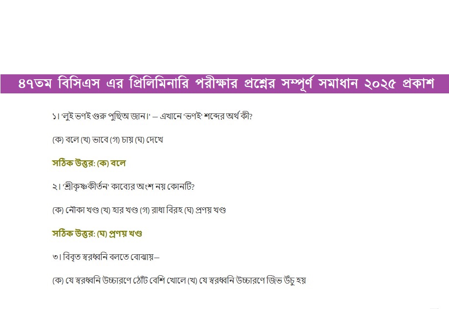 See/download the 47th BCS MCQ Question Solution 2025 below: