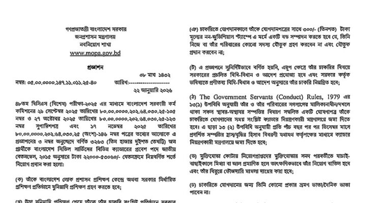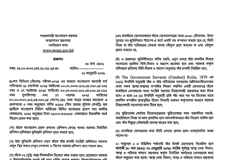 48th BCS Gazette 2026 has been published. 48th Medical Health BCS Final Gazette 2026 has been published by the authority. 48th Special BCS Gazette Notice 2026 is helpful for job seekers in Bangladesh. All information on the 48th BCS Joining Notice 2026 is available below. Bangladesh Public Service Commission (BPSC) is a Government Organization in Bangladesh.
