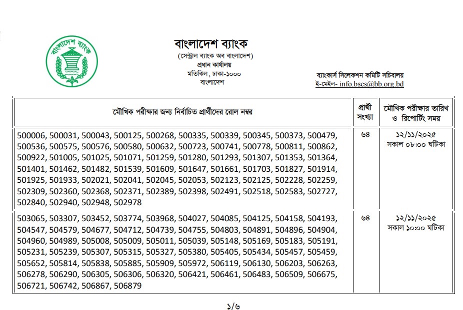 See/download the Combined 5 Bank Officer (Cash) Written Exam Result and Viva Notice 2025 from the images below:
