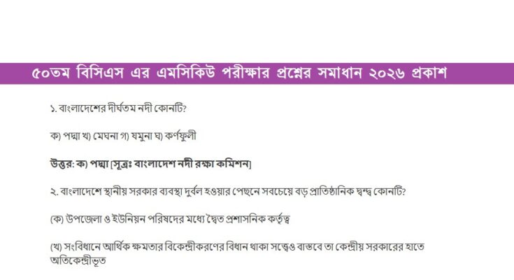 See/download 50th BCS MCQ Exam Question Solution 2026 from below:
