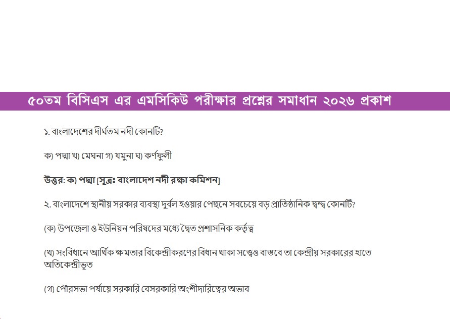 See/download 50th BCS MCQ Exam Question Solution 2026 from below: