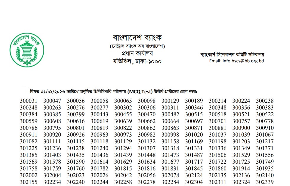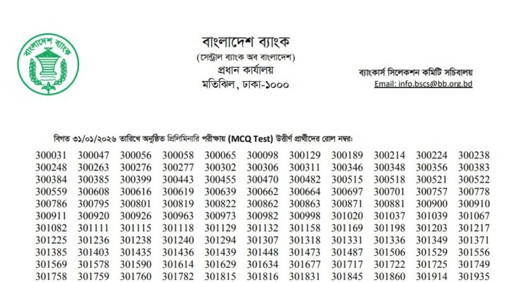The Combined 8 Bank Officer (General) MCQ Exam Result 2026 has been published. The authority has published the Combined 8 Bank Officer Preli Exam Result 2026. The Combined 8 Bank Officer (General) Exam Result 2026 is good news for job seekers in Bangladesh. All information on the 8 Bank Officer (General) Exam Result 2026 is available below. The Banker’s Selection Committee Secretariat (BSCS) is a Government Organization in Bangladesh.