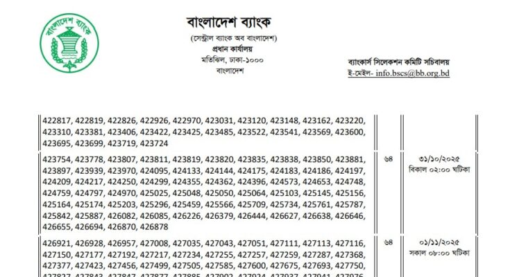 Combined 9 Bank Officer (General) Written Exam Result and Viva Date 2025 has been published. The authority has published the Combined 9 Bank Officer (General) Written Exam Result 2025. The Combined 9 Bank Officer (General) Viva Date 2025 is good news for job seekers in Bangladesh. All information on the Combined 9 Bank Officer Viva Date 2025 is available below. The Banker’s Selection Committee Secretariat (BSCS) is a Government Organization in Bangladesh.