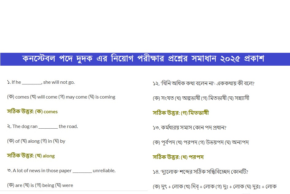 ACC Constable MCQ Exam Question Solution 2025 has been published by the authority. The Anti-Corruption Commission (ACC) is one of the largest Government organizations in Bangladesh. The Anti-Corruption Commission (ACC) has published a huge job circular for the Authority. All information regarding the appointment of the Anti-Corruption Commission (ACC) is given on our website, jobstestbd.com. We publish all job circulars every day, Such as Government Jobs in Bangladesh, Bank Jobs in Bangladesh, Private Jobs in Bangladesh, International NGOs in Bangladesh, Private companies in Bangladesh, and Private University Jobs in Bangladesh. Bank Jobs Results, Government Jobs Results, Government University Jobs Results in Bangladesh, and all Part-time Jobs in Bangladesh and other educational support are available here on our website. We provide different types of job information and provide some adequate information or resources and job tips that help to get a job easily. We trust that our distribution data helps job seekers who are finding superior employment. We likewise share slanting assets for learners who are uniquely expanding their insight. Our prime target turns into a trustworthy occupations round site in Bangladesh by distributing a genuine update that enables individuals to. All the jobs on this website are not only for unemployed people but also for employed people. All types of suggestions and question solutions for the different competitive exams are available here. We provide all types of educational support on our website, jobstestbd.com. So every day, tune in to our website for all kinds of educational support. Please like our Facebook page, jobstestbd.com.
