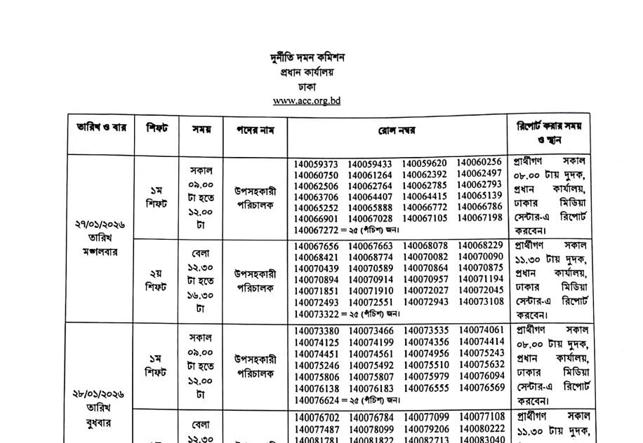 Anti-Corruption Commission (ACC) Viva Date 2026 has been published. Anti-Corruption Commission Viva Date 2026 has been published by the authority. Dudok Viva Date 2026 is good news for job seekers in Bangladesh. All information about the Anti-Corruption Commission Deputy Assistant Director Viva Date 2026 is available below. The Anti-Corruption Commission (ACC) is a government organization in Bangladesh.