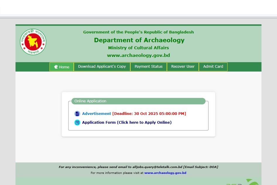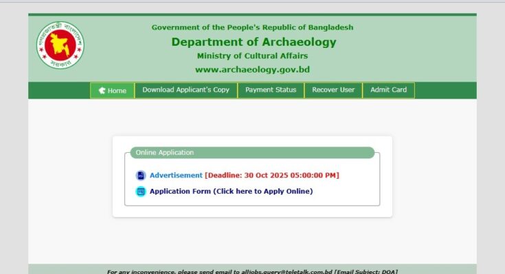 Department of Archaeology Job Circular 2025 has been published. The authority has published the Department of Archaeology (DOA) Job Circular 2025. The Archaeology Department Job Circular 2025 is good news for job seekers. All information on the DOA Job Circular 2025 is available below. The Department of Archaeology (DOA) is a Government organization in Bangladesh.
