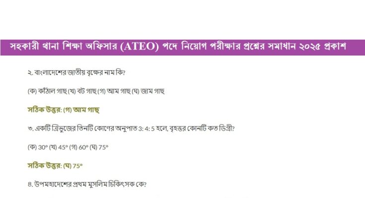See/download Assistant Thana Education Officer (ATEO) Exam Question Solution 2025 below: