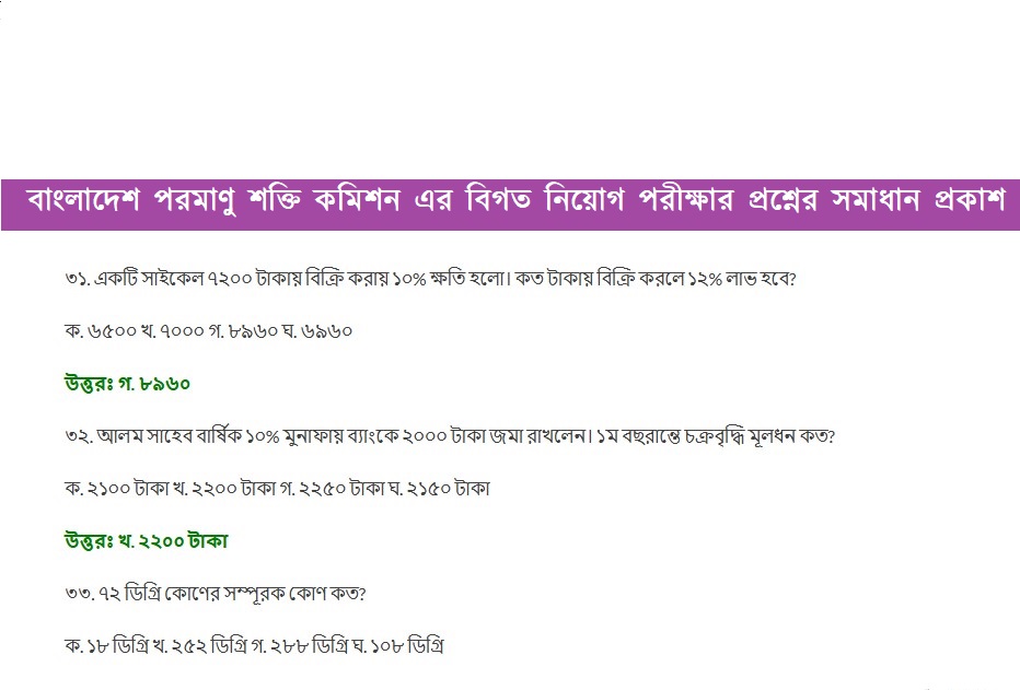 BAEC Previous Exam Question Solution is available below. Bangladesh Atomic Energy Commission (BAEC) Previous Exam Question Solution, Previous Exam Question Solution of BAEC, BAEC Previous Exam Question and Solution, BAEC Previous Exam Question Solved, BAEC Previous Exam Question, BAEC Previous Exam Question and answer, BAEC Previous Exam Question with Solution, Bangladesh Atomic Energy Commission BAEC Previous Exam Question Solution are search options to get the solution of BAEC Previous Exam Question Solution.