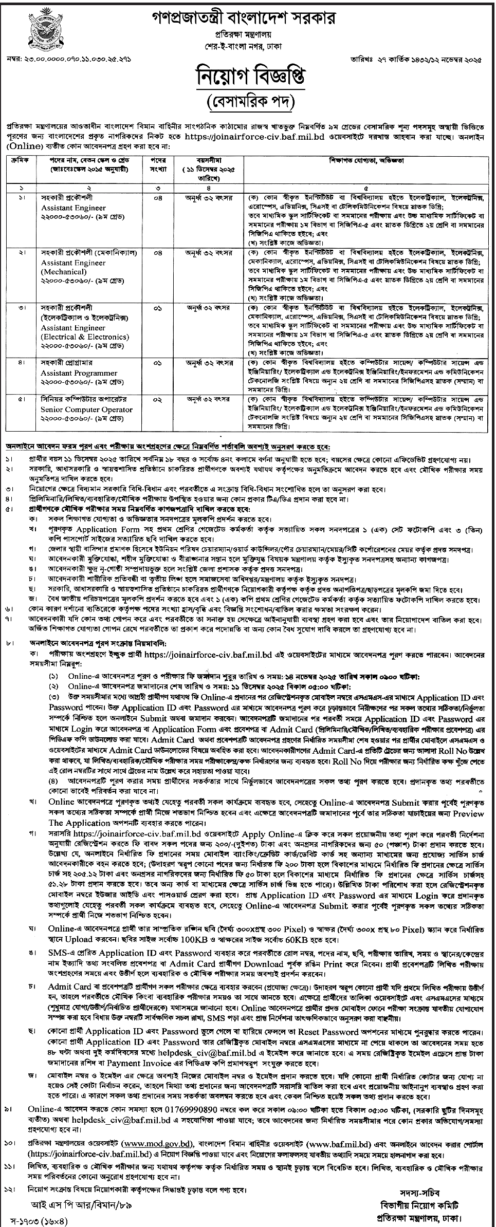 Bangladesh Air Force Civilian Post Job Circular 2025: