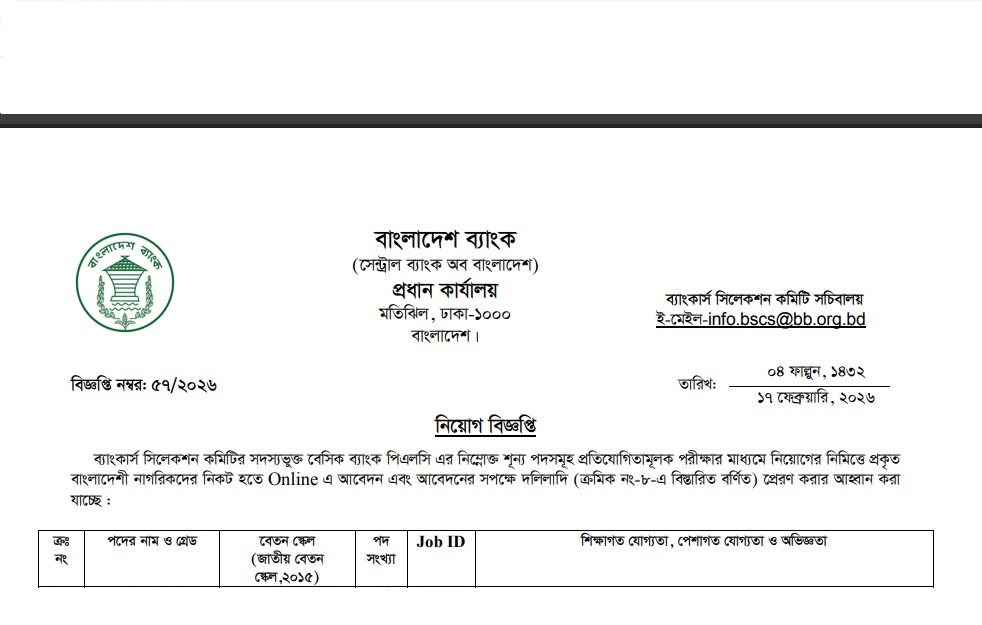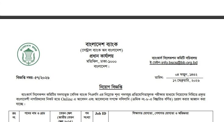 Bankers´ Selection Committee Secretariat Basic Bank PLC Job Circular 2026 has been published. Bangladesh Bank is the central bank of Bangladesh. Bangladesh Bank has published a huge job circular by the Authority. All information regarding the appointment at Bangladesh Bank is given on our website, jobstestbd.com. We publish all job circulars every day, Such as Government Jobs in Bangladesh, Bank Jobs in Bangladesh, Private Jobs in Bangladesh, International NGOs in Bangladesh, Private companies in Bangladesh, and Private University Jobs in Bangladesh. Bank Jobs Results, Government Jobs Results, Government University Jobs Results in Bangladesh, and all Part-time Jobs in Bangladesh and other educational support are available here on our website. We provide different types of job information, and also provide some effective information or resources and job tips that help to get a job easily. We trust that our distribution of data helps the job seekers who are finding superior employment. We likewise share slanting assets for learners who are expanding their insight. Our prime target turns into a trustworthy occupations round site in Bangladesh by distributing a genuine update that enables individuals to individuals. All the jobs on this website are not only for unemployed people but also for employed people. Suggestions and question solutions for the different competitive exams are available here. We provide all types of educational support on our website, jobstestbd.com. Every day, tune in to our website for a variety of educational support resources. Please like our Facebook page, jobstestbd.com.