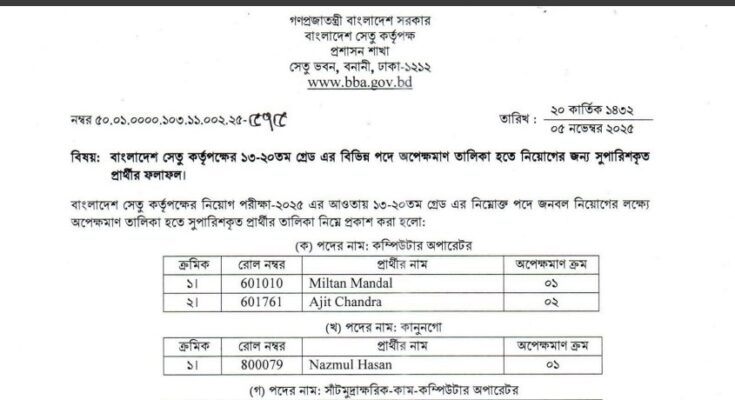 Bangladesh Bridge Authority Exam Result Notice 2025: