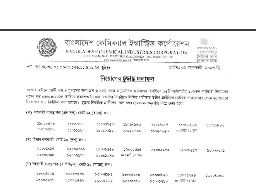 See/download Bangladesh Chemical Industries Corporation Final Result Notice 2026 from the images below: