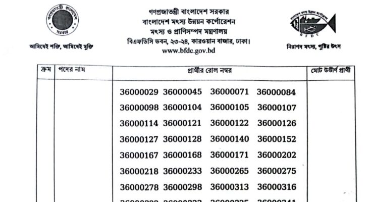 Bangladesh Fisheries Development Corporation (BFDC) Exam Result 2026 has been published. The authority has published the BFDC Exam Result 2026. Bangladesh Fisheries Development Corporation Exam Result 2026 is good news for job seekers in Bangladesh. All information on the Fisheries Development Corporation Office Sohayok Exam Result 2026 is available below. The Bangladesh Fisheries Development Corporation (BFDC) is a Government Organization in Bangladesh.