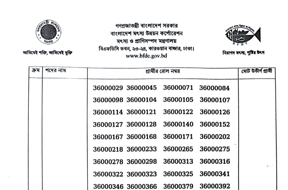 See/download Bangladesh Fisheries Development Corporation (BFDC) Exam Result Notice 2026 from the images below: