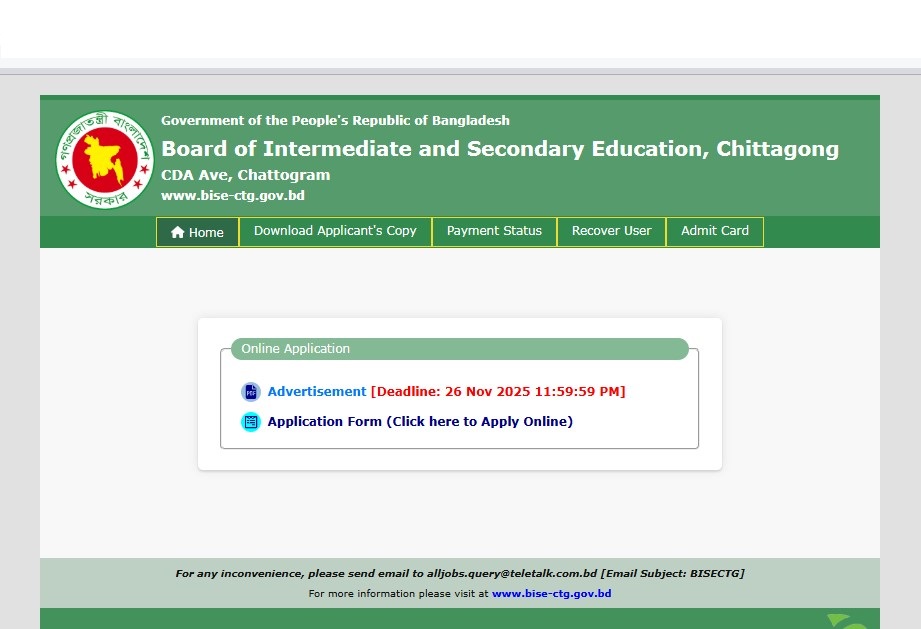 See/download the Board of Intermediate and Secondary Education Chittagong Job Circular 2025, Job Apply Instruction, Job Application Form, Application Fee, Payment Process, Salary, Age, and Other Information in the images below: