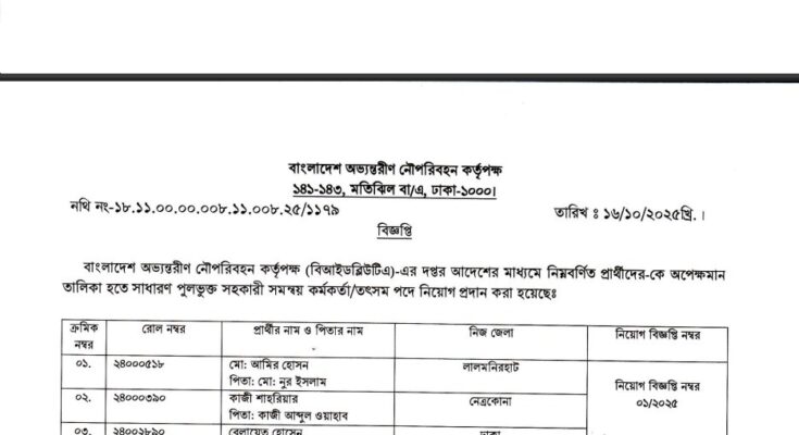 Bangladesh Inland Water Transport Authority Panel Result 2025: