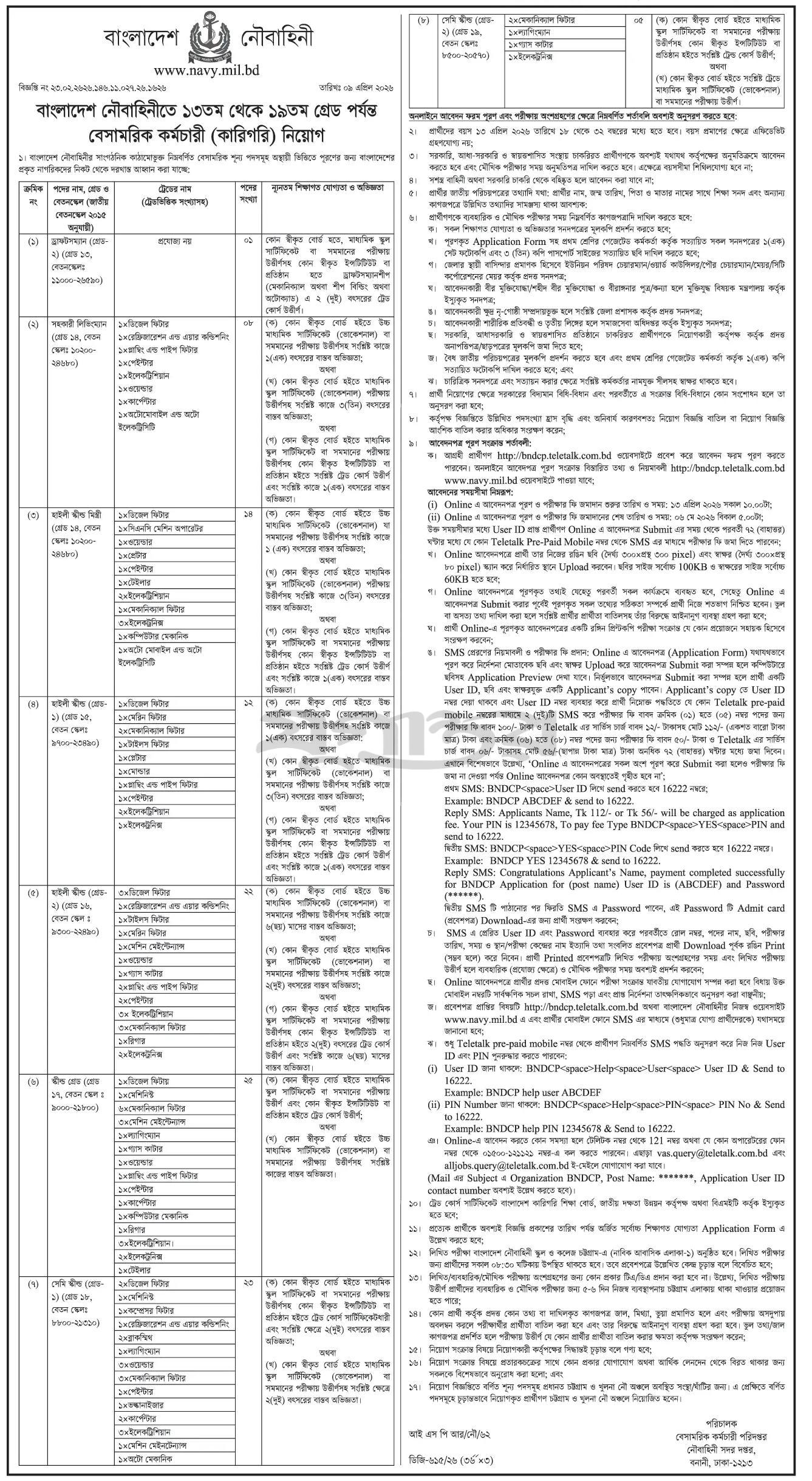 See/download Bangladesh Navy Civilian Job Circular 2026, Job Apply Instructions, Job Application Form, Application Fee, Payment Process, Salary, Age, and Other Information from the images below: