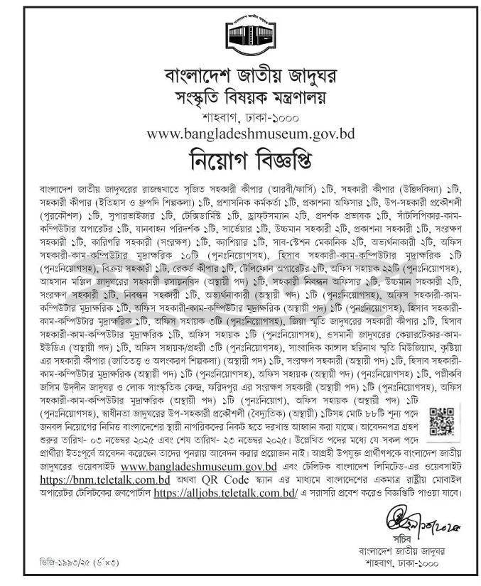 Bangladesh National Museum (BNM) Job Circular 2025 has been published. The authority has published the BNM Job Circular 2025. Bangladesh National Museum Job Circular 2025 is good news for job seekers in Bangladesh. All information on the National Museum Job Circular 2025 is available below. The Bangladesh National Museum (BNM) is a Government Organization in Bangladesh.