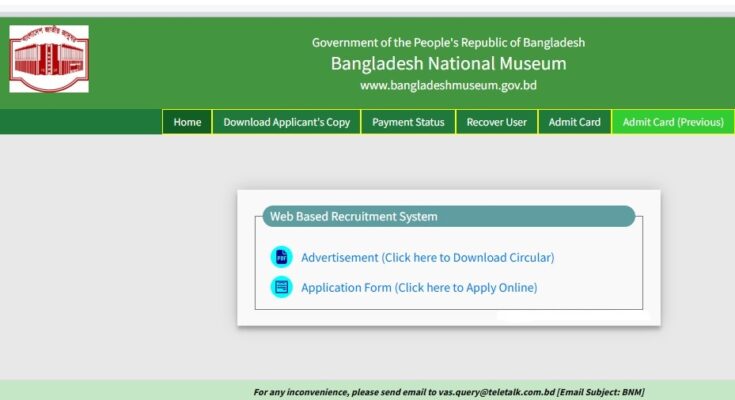 See/download the Bangladesh National Museum (BNM) Job Circular 2025, Job Apply Instructions, Job Application Form, Application Fee, Payment Process, Salary, Age, and Other Information from the images below: