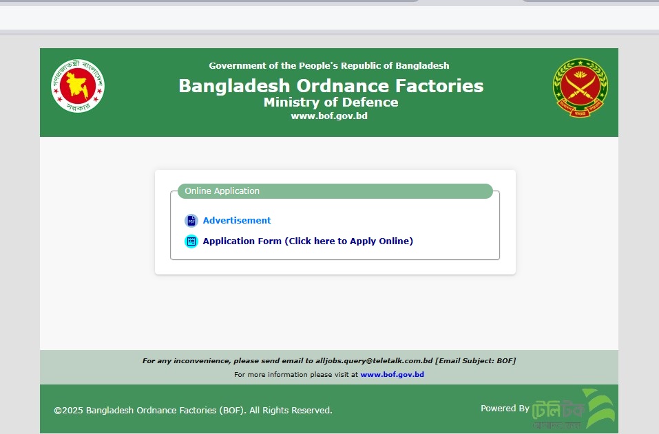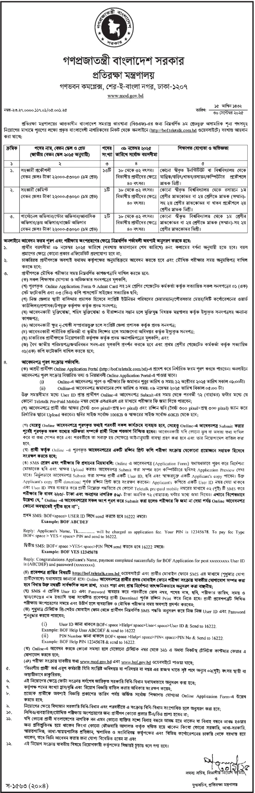 Bangladesh Ordnance Factories (BOF) Job Circular 2025