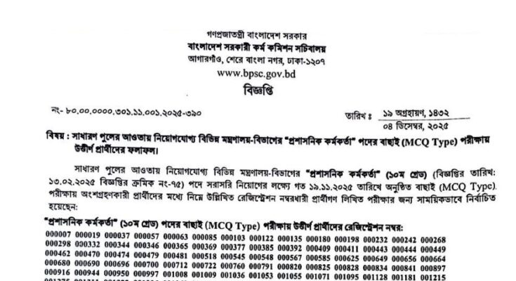 BPSC Non-Cadre Administrative Officer Exam Result 2025 has been published. The authority has published the BPSC Non-Cadre AO Exam Result 2025. BPSC Non-Cadre Administrative Officer MCQ Exam Result 2025 is good news for job seekers in Bangladesh. All information on the BPSC Non-Cadre Administrative Officer Exam Result Notice 2025 is available below. Bangladesh Public Service Commission (BPSC) is a government organization in Bangladesh.