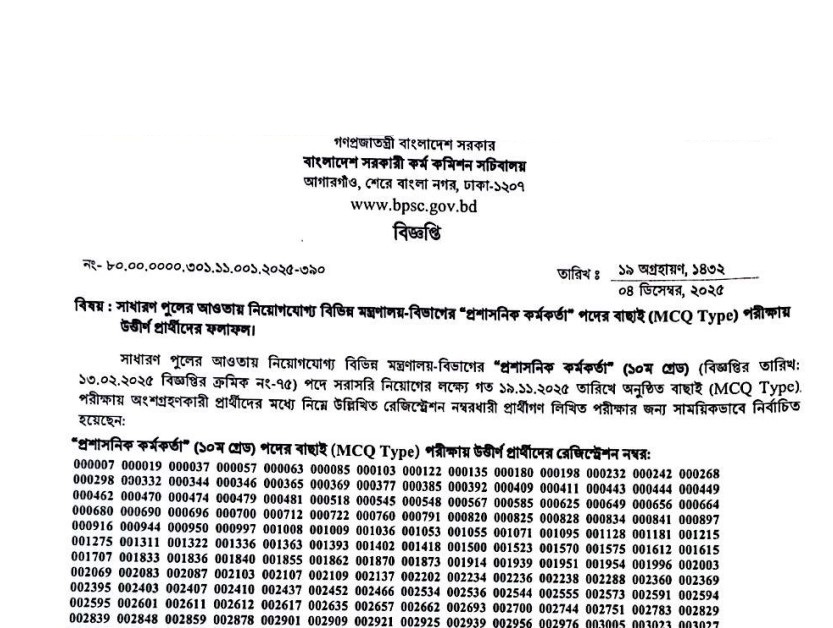 See/download the Bangladesh Public Service Commission Non-Cadre Exam Result Notice 2025 from the images below: