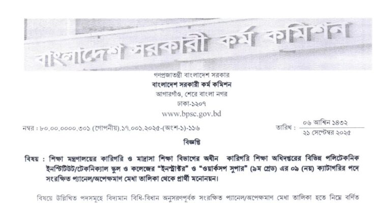 BPSC Non-Cadre Panel Result 2025 has been published. BPSC Non-Cadre Instructor Panel Result 2025 has been published by the authority. BPSC Non-Cadre Workshop Super Panel Result 2025 is good news for job seekers in Bangladesh. All information on the BPSC Non-Cadre Instructor Panel List 2025 is available below. Bangladesh Public Service Commission (BPSC) is a government organization in Bangladesh.