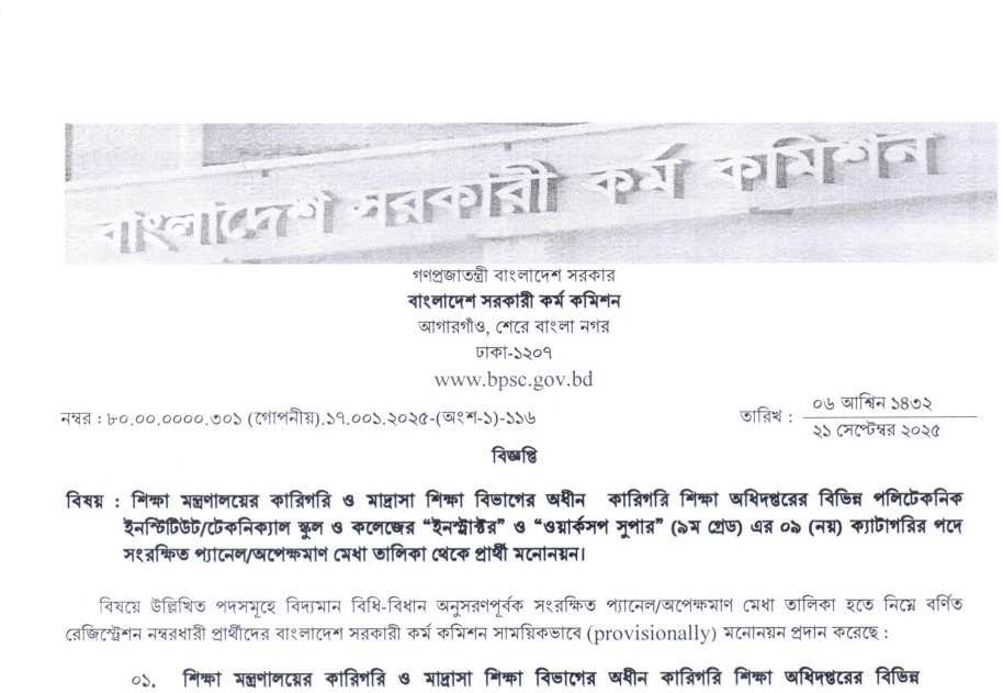 See/download the Bangladesh Public Service Commission Non-Cadre Panel Result Notice 2025 from the images below: