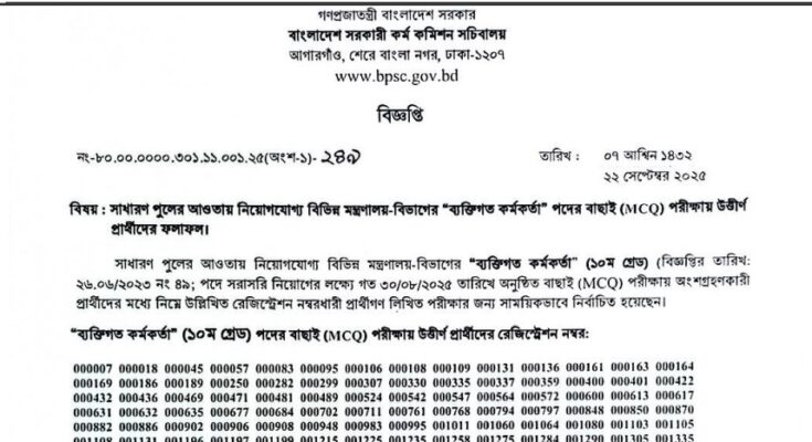 See/download the Bangladesh Public Service Commission Non-Cadre Personal Officer Exam Result Notice 2025 from the images below: