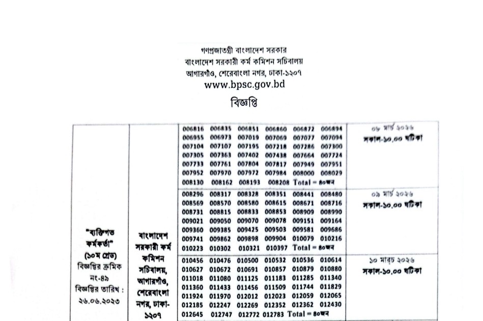 See/download the Bangladesh Public Service Commission Non-Cadre Personal Officer Practical Test Notice 2026 from the images below: