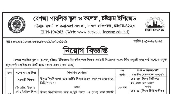 BEPZA Public School and College Chattogram EPZ Job Circular 2025: