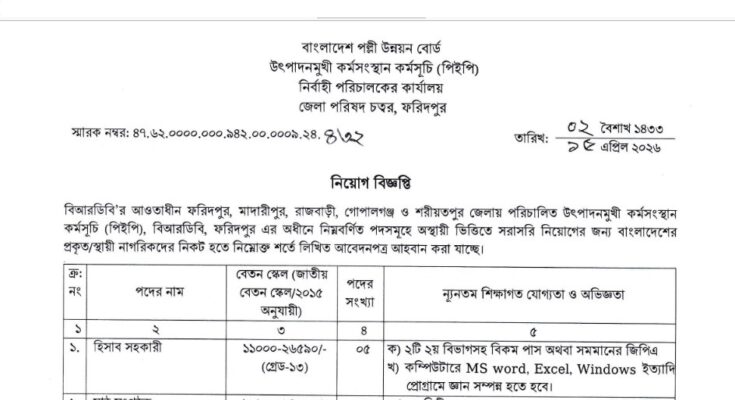 BRDB Productive Employment Program (PEP) Job Circular 2026 has been published. The authority has published the Productive Employment Program (PEP) Job Circular 2026. PEP Job Circular 2026 is good news for job seekers. All information on the BRDB Productive Employment Program Job Circular 2026 is available below. Productive Employment Program (PEP) is a Government project Under Bangladesh Rural Development Board (BRDB) in Bangladesh.