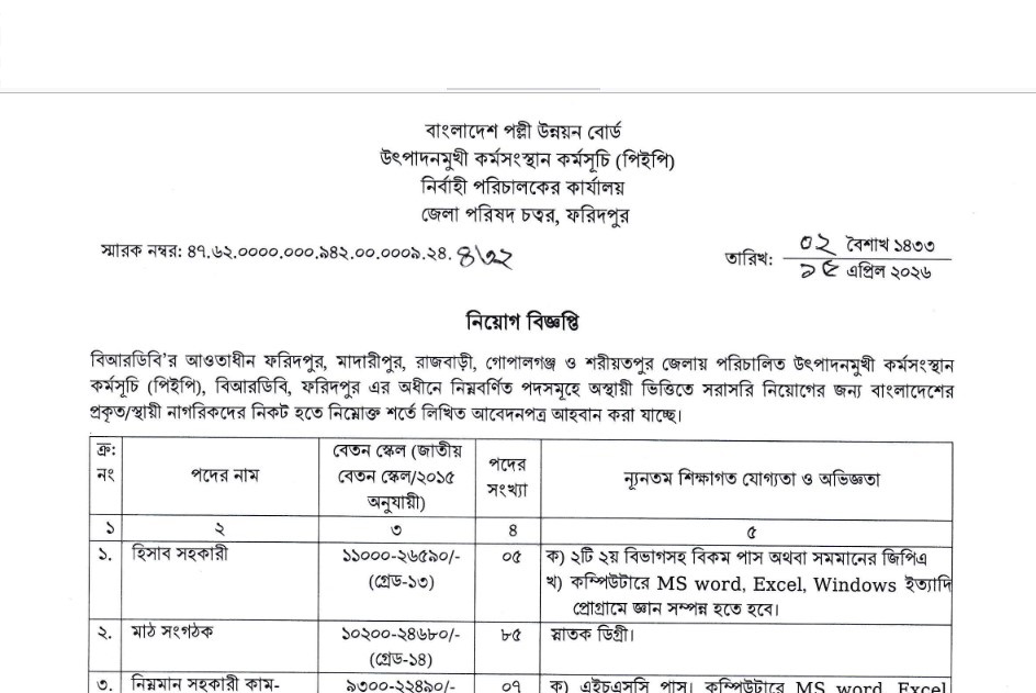 BRDB Productive Employment Program Job Circular 2026: