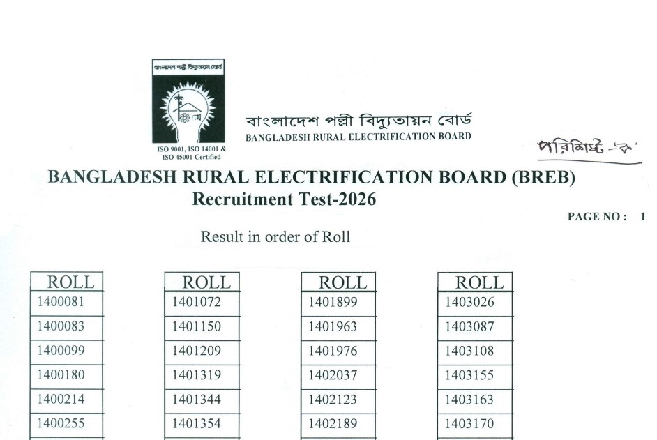 See/download the Bangladesh Rural Electrification Board (BREB) Exam Result Notice 2026 from the images below: