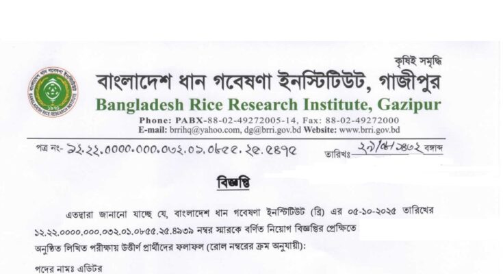 Bangladesh Rice Research Institute Job Exam Result 2025: