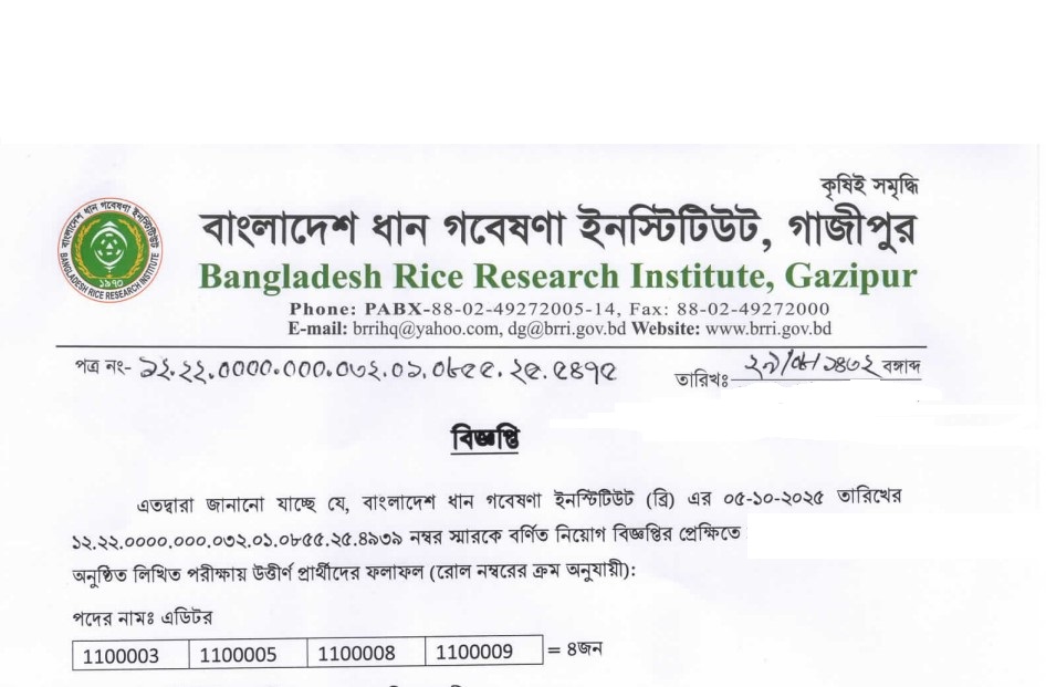 See/download the Bangladesh Rice Research Institute (BRRI) Exam Result Notice 2025 from the images below: