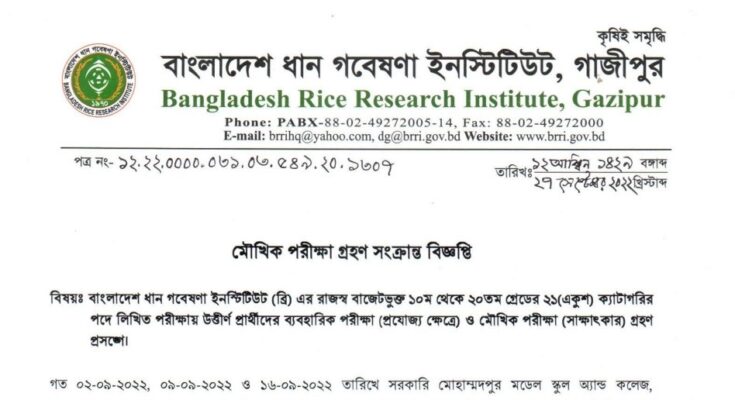 BRRI Viva Exam Date 2022 has been published by the authority. Bangladesh Rice Research Institute (BRRI) Viva Exam Date information is given below. Bangladesh Rice Research Institute (BRRI) is one of the largest Government organizations in Bangladesh. Bangladesh Rice Research Institute (BRRI) has published a huge job circular by the Authority. All information regarding the appointment of the Bangladesh Rice Research Institute (BRRI) is given on our website, jobstestbd.com. We publish all job circulars every day, Such as Government Jobs in Bangladesh, Bank Jobs in Bangladesh, private jobs in Bangladesh, International NGOs in Bangladesh, Private companies in Bangladesh, and private university Jobs in Bangladesh. Bank Jobs Results, Government Jobs Results, Government University Jobs Results in Bangladesh, and all Part-time Jobs in Bangladesh and other educational support are available here on our website. We provide different types of job information, with also provide some adequate information or resources and job tips which help to get a job easily. We trust that our distributed data helps job seekers who are finding superior employment. We likewise share slanting assets for learners who are uniquely expanding their insight. Our prime target turns into a trustworthy occupation site in Bangladesh by distributing a genuine update that enables individuals to. This website’s jobs are not only for unemployed people but also for employed people. All types of suggestions and question solutions for the different competitive exams are available here. We provide various kinds of educational support on our website, jobstestbd.com. So every day, tune in to our website for all kinds of educational support. Please like our Facebook page, jobstestbd.com.