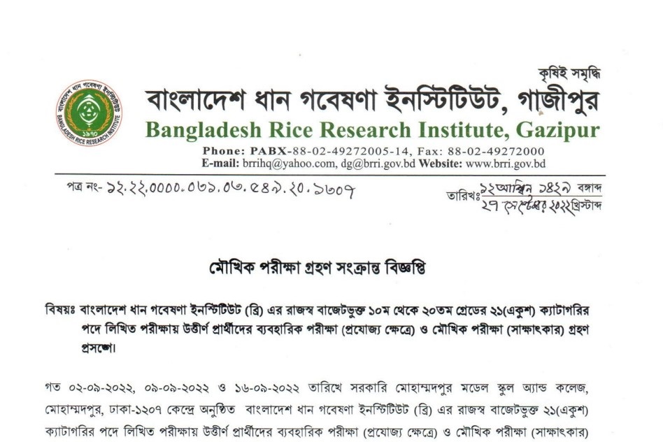 BRRI Viva Exam Date 2022 has been published by the authority. Bangladesh Rice Research Institute (BRRI) Viva Exam Date information is given below. Bangladesh Rice Research Institute (BRRI) is one of the largest Government organizations in Bangladesh. Bangladesh Rice Research Institute (BRRI) has published a huge job circular by the Authority. All information regarding the appointment of the Bangladesh Rice Research Institute (BRRI) is given on our website, jobstestbd.com. We publish all job circulars every day, Such as Government Jobs in Bangladesh, Bank Jobs in Bangladesh, private jobs in Bangladesh, International NGOs in Bangladesh, Private companies in Bangladesh, and private university Jobs in Bangladesh. Bank Jobs Results, Government Jobs Results, Government University Jobs Results in Bangladesh, and all Part-time Jobs in Bangladesh and other educational support are available here on our website. We provide different types of job information, with also provide some adequate information or resources and job tips which help to get a job easily. We trust that our distributed data helps job seekers who are finding superior employment. We likewise share slanting assets for learners who are uniquely expanding their insight. Our prime target turns into a trustworthy occupation site in Bangladesh by distributing a genuine update that enables individuals to. This website’s jobs are not only for unemployed people but also for employed people. All types of suggestions and question solutions for the different competitive exams are available here. We provide various kinds of educational support on our website, jobstestbd.com. So every day, tune in to our website for all kinds of educational support. Please like our Facebook page, jobstestbd.com.