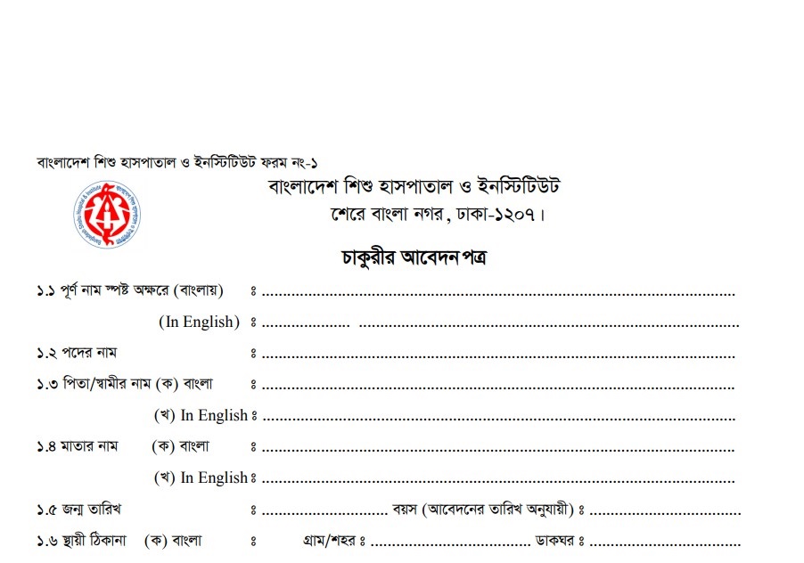 Bangladesh Shishu Hospital & Institute Job Circular 2025: