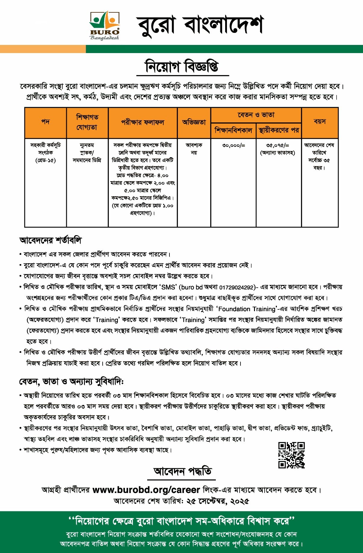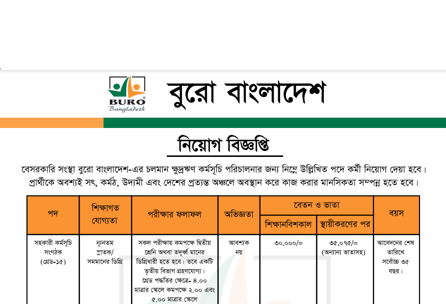 See/download BURO Bd NGO Job Circular 2025, Job Apply Instructions, Job Application Form, Application Fee, Payment Process, Salary, Age, and Other Information in the image below: