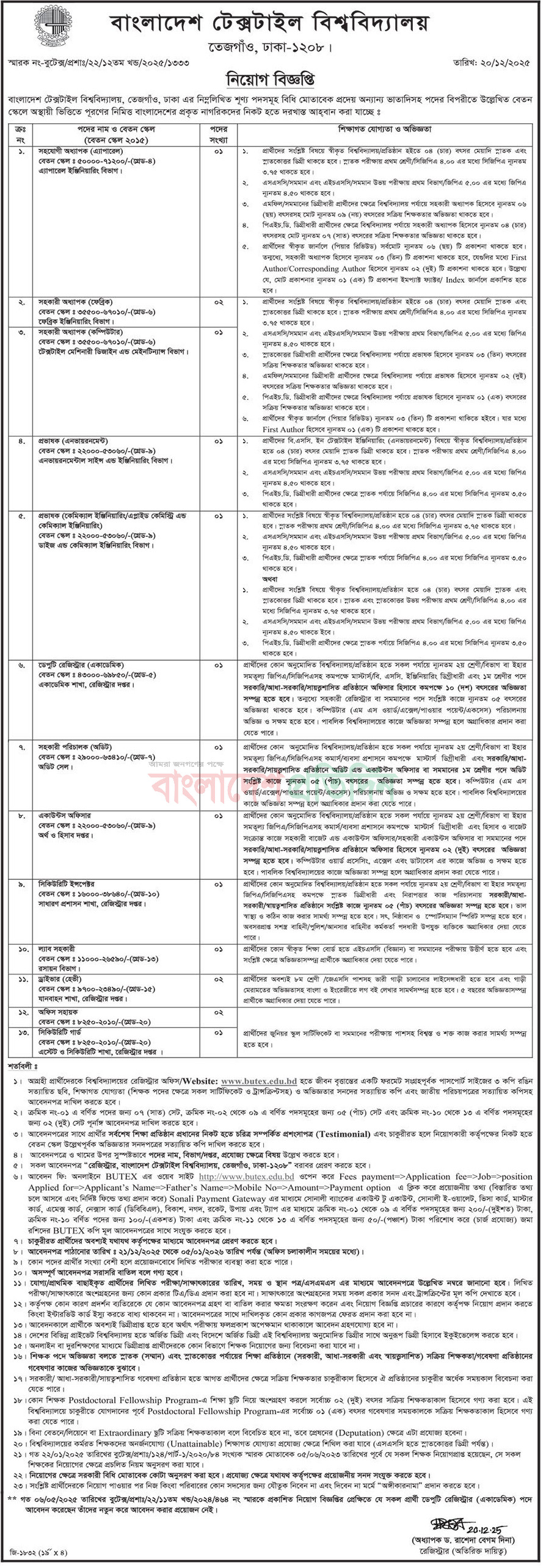 See/download Bangladesh University of Textiles Job Circular 2025, Job Apply Instructions, Job Application Form, Application Fee, Payment Process, Salary, Age, and Other Information from the images below: