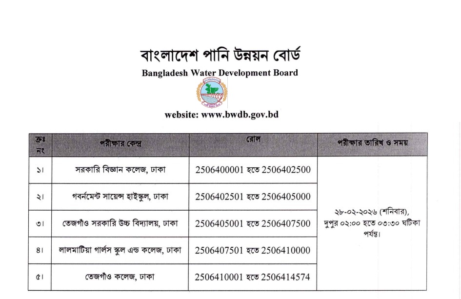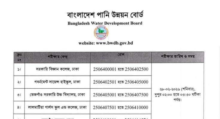 Bangladesh Water Development Board Exam Date and Admit Download 2026: